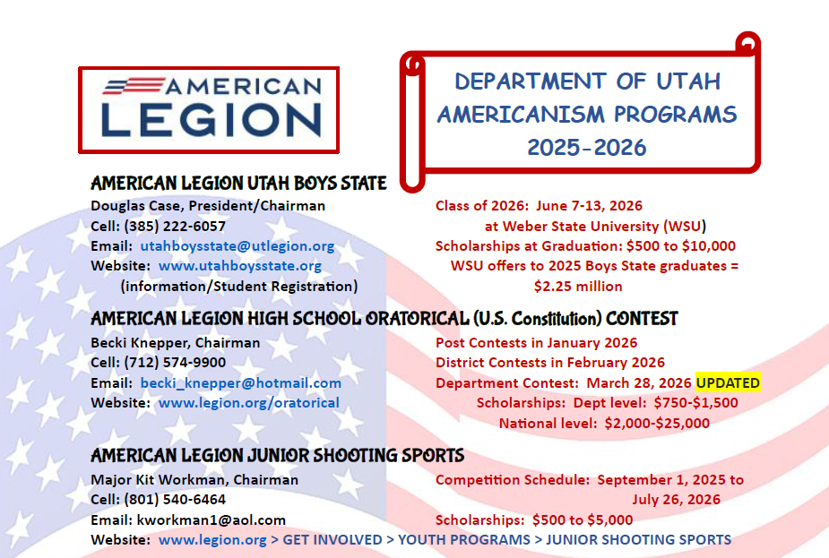 American Legion Utah Boys State is among the most respected civic educational programs for high school students. LEARN MORE>